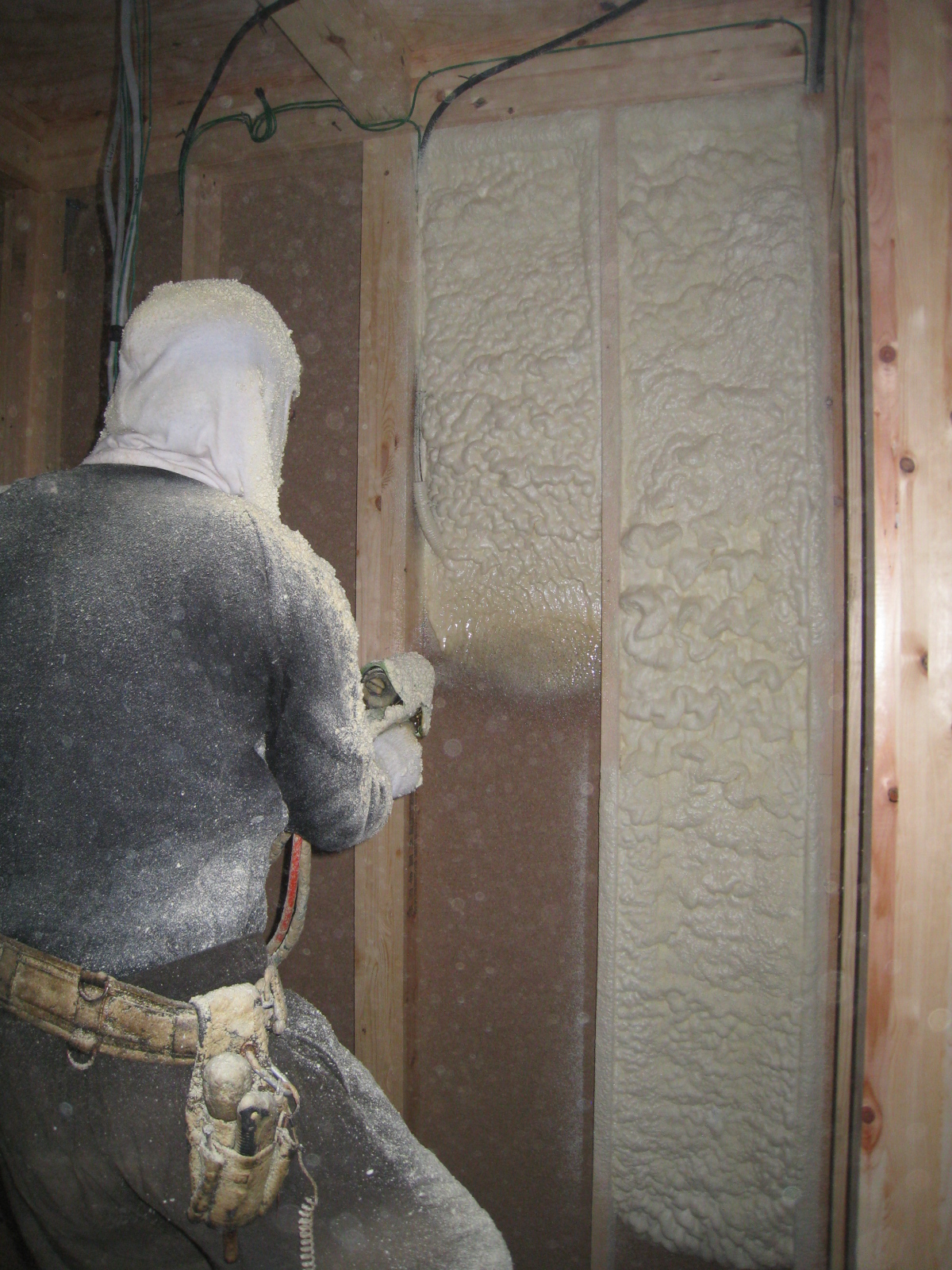 ウレタン断熱材を吹付作業は、こんな感じなんです。