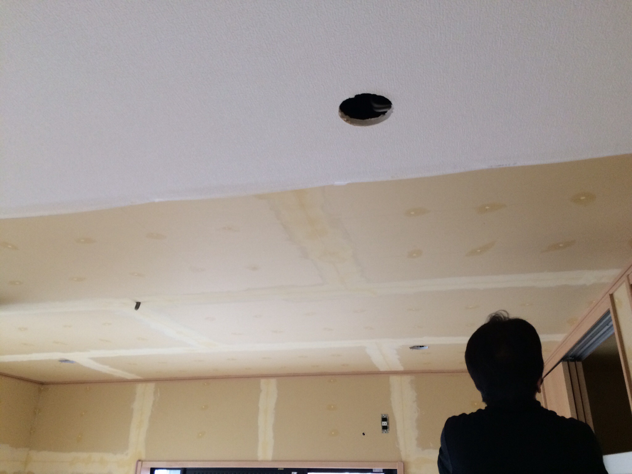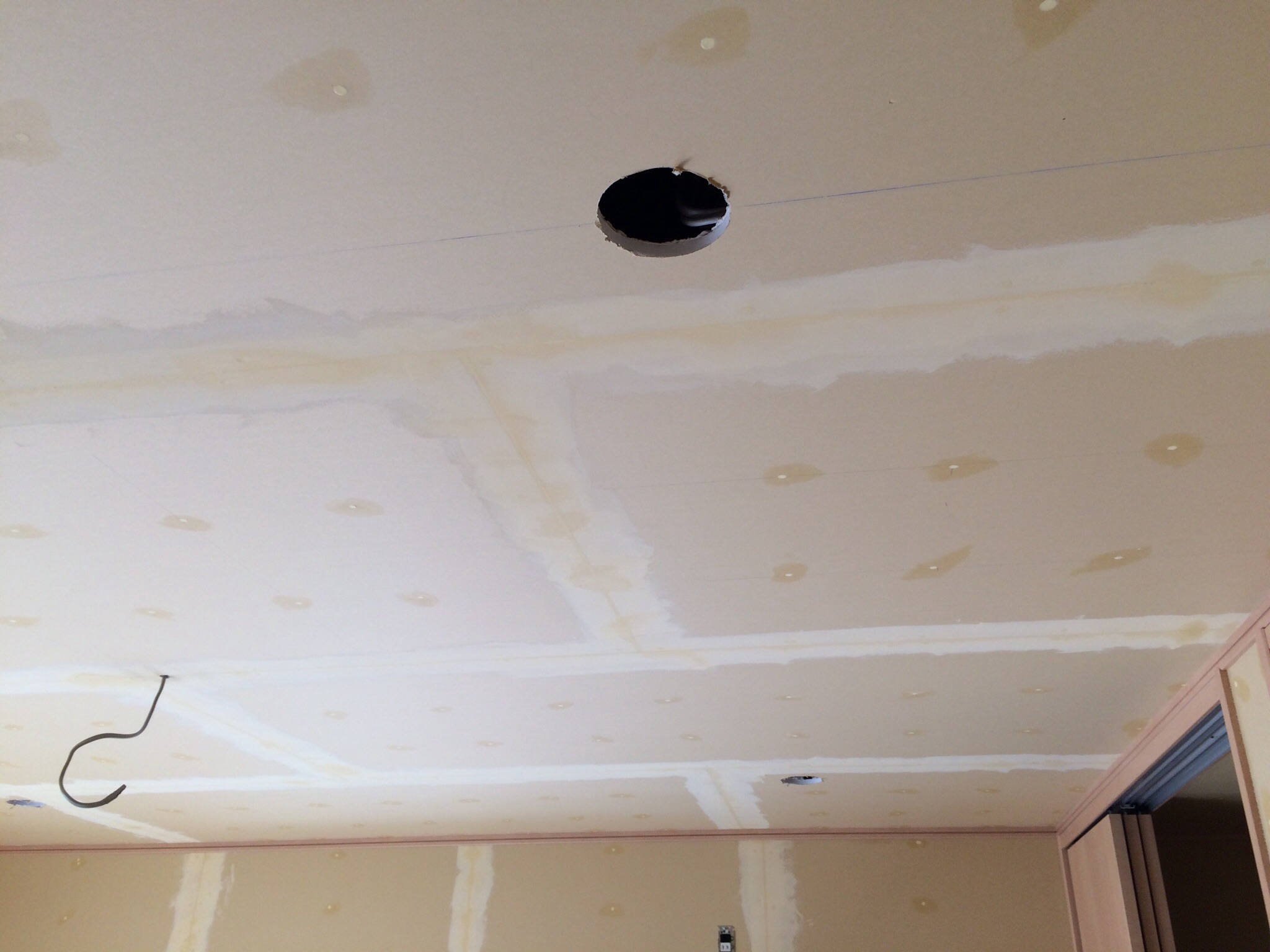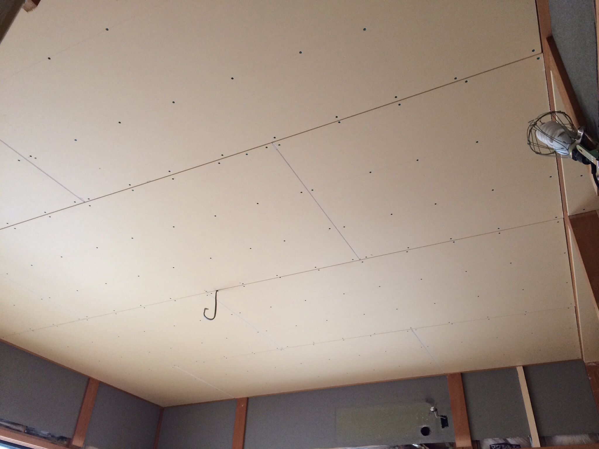 天井には、下地を施工し、石膏ボード貼。これで、新築と同じように、クロスを施工できます。