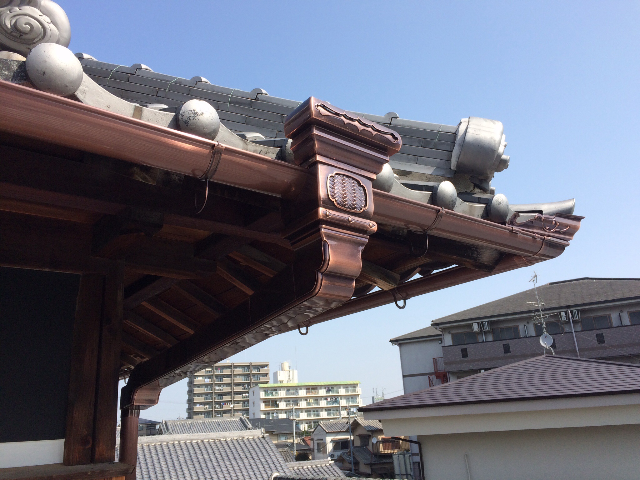 当初は、和風のお家によく使用される銅の雨樋が設置されておりました。昔から日本では、銅は高級品とされておりとても長寿命です。