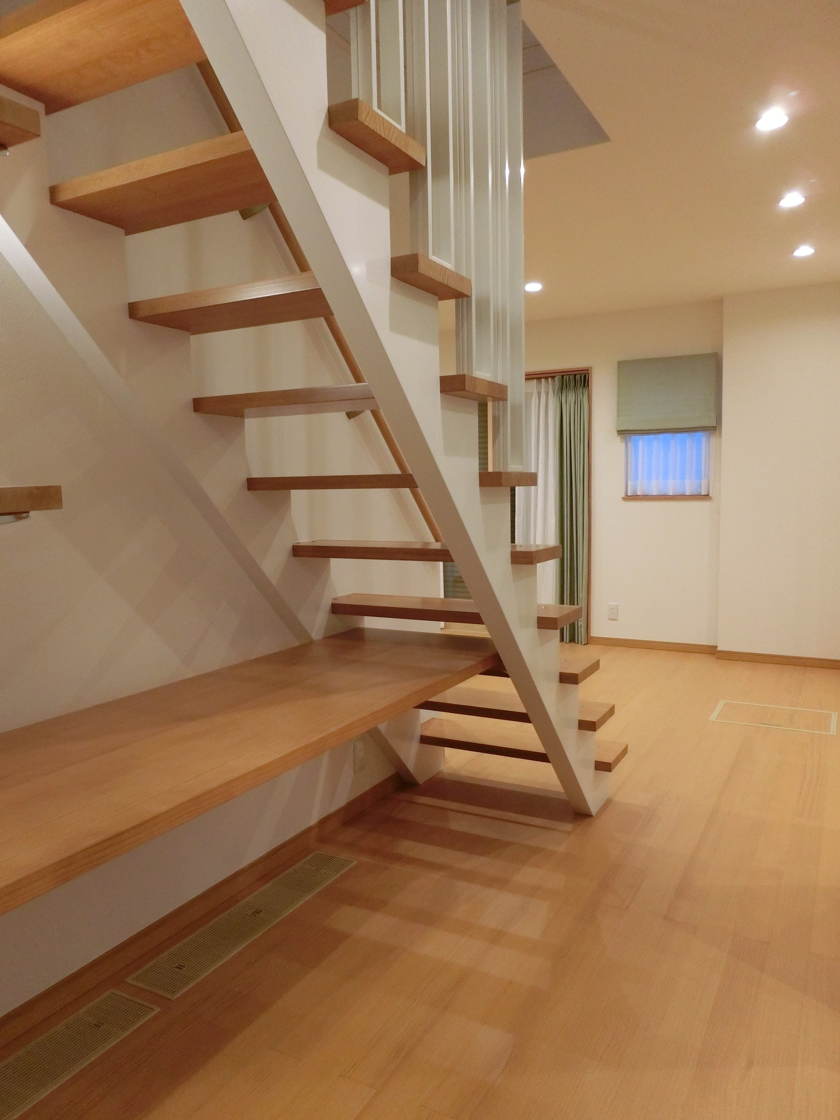 グリルから暖かい輻射熱を放出します。(階段カウンター下の床に設置)