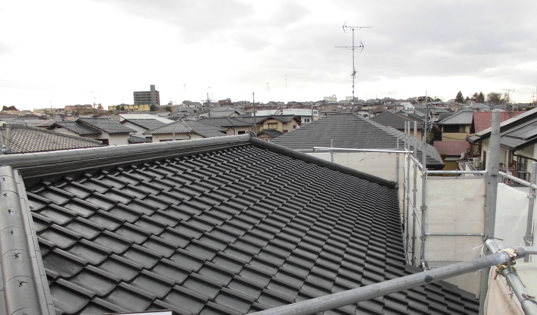 今回は、この瓦の塗装も含めて、外装塗装を行ない、
