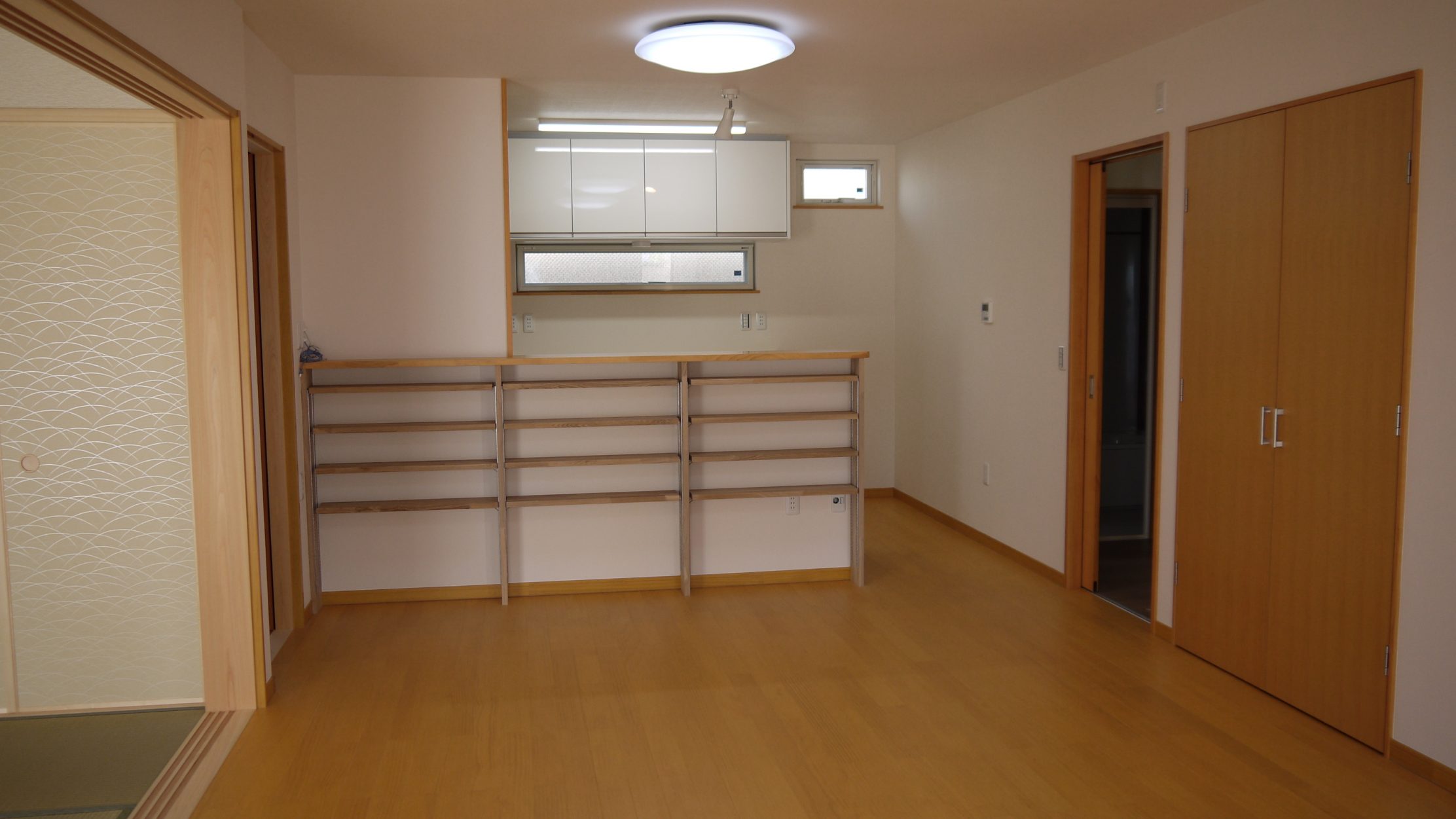 親世帯のリビング 8帖、6帖の和室と隣接しており、仕切戸をあけると大勢の人数が入れます。