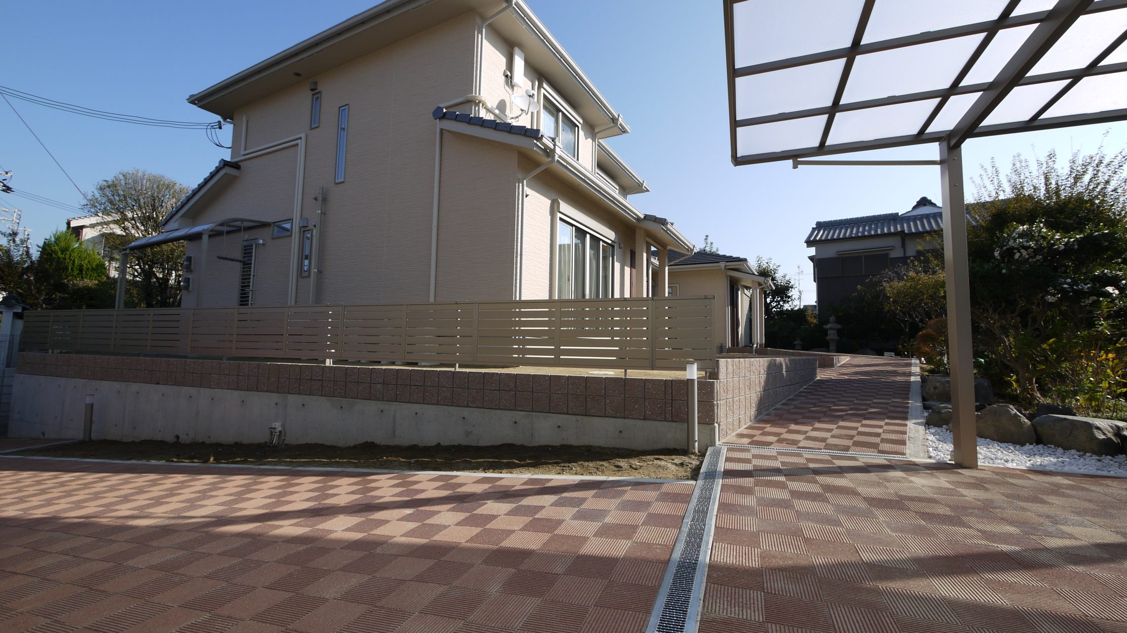 出入り口、ガレージから玄関までのスロープ