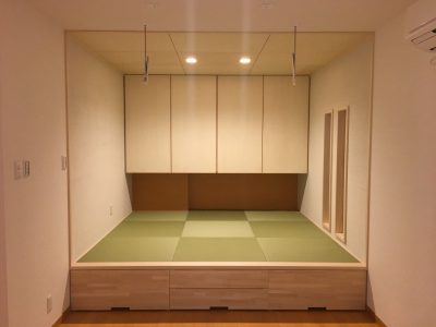 このスペースは、小上がりになったスペースで、腰掛できるように40cmの段差にしております