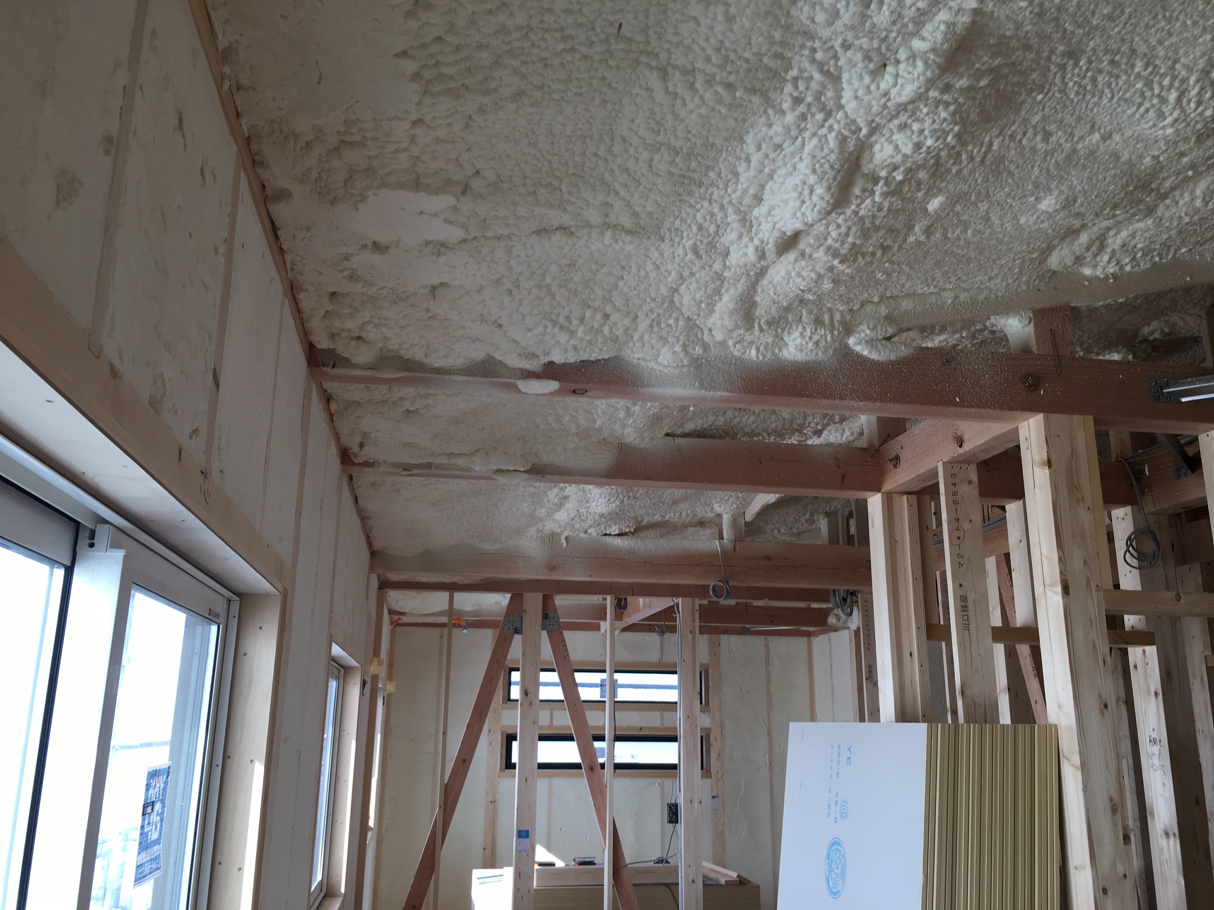 1月中旬に上棟した現場で先日、ウレタンの吹き付け施工に入りました。