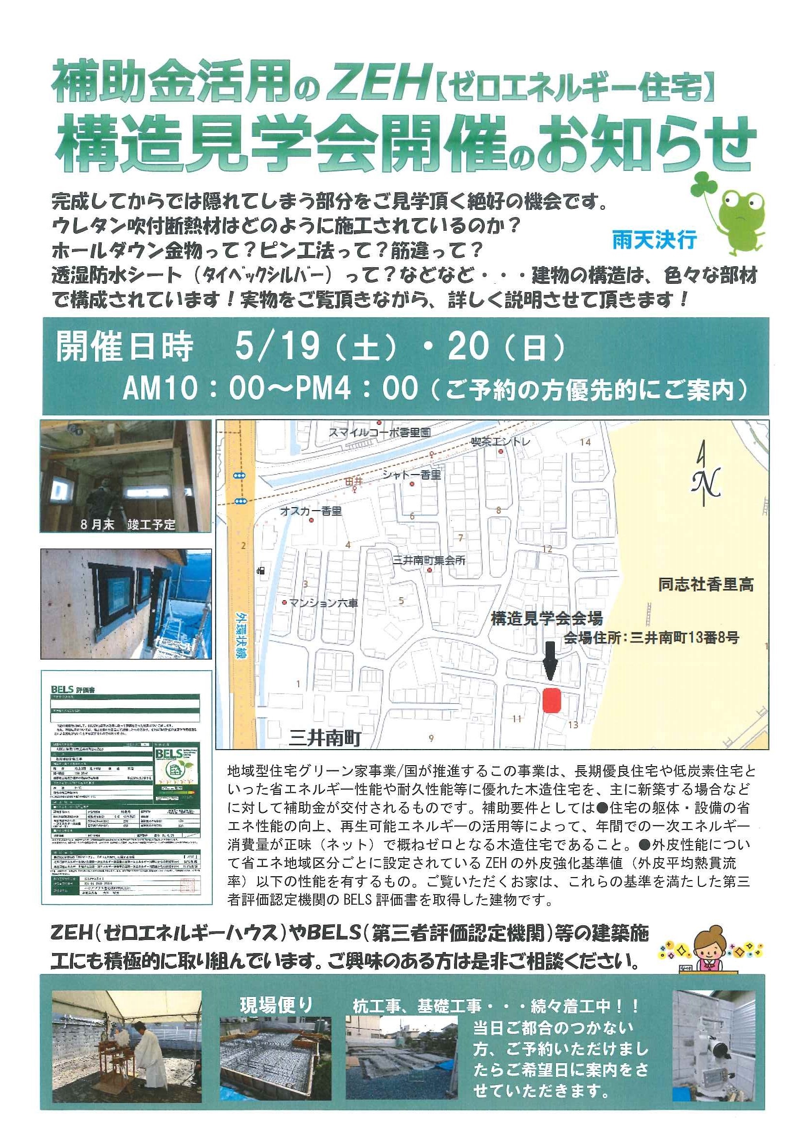 5月19日(土)、20日(日)に補助金を活用された「構造見学会」を開催いたします。