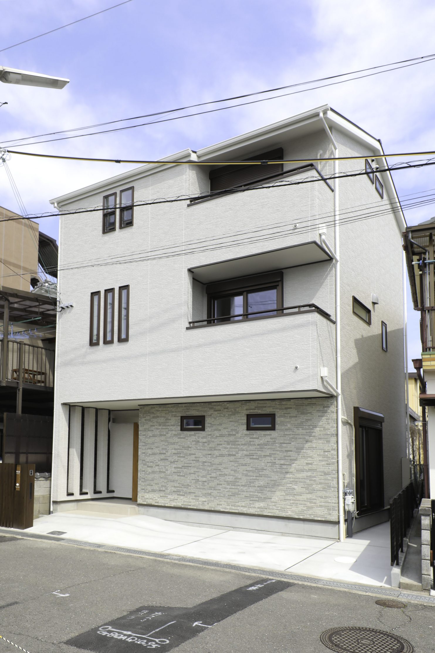 比較的隣地と密接している場所でしたので 圧迫感の出ないよう白色ベースにやわらかい色で景観を損ねないように配色を纏めました。