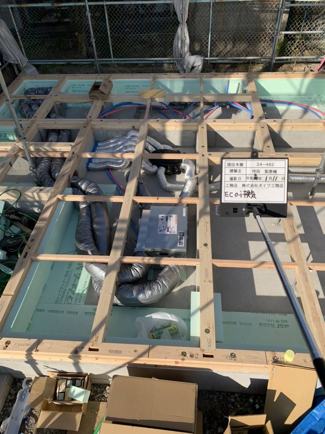 - 遮熱、断熱の性能や気密性能を高めるためには樹脂サッシ、LOW-eガラス、吹付断熱材、遮熱シートなど、ここ数年で一般的な仕様としてよく目にするようになってきましたが、弊社では標準仕様として10年以上前より採用しています。