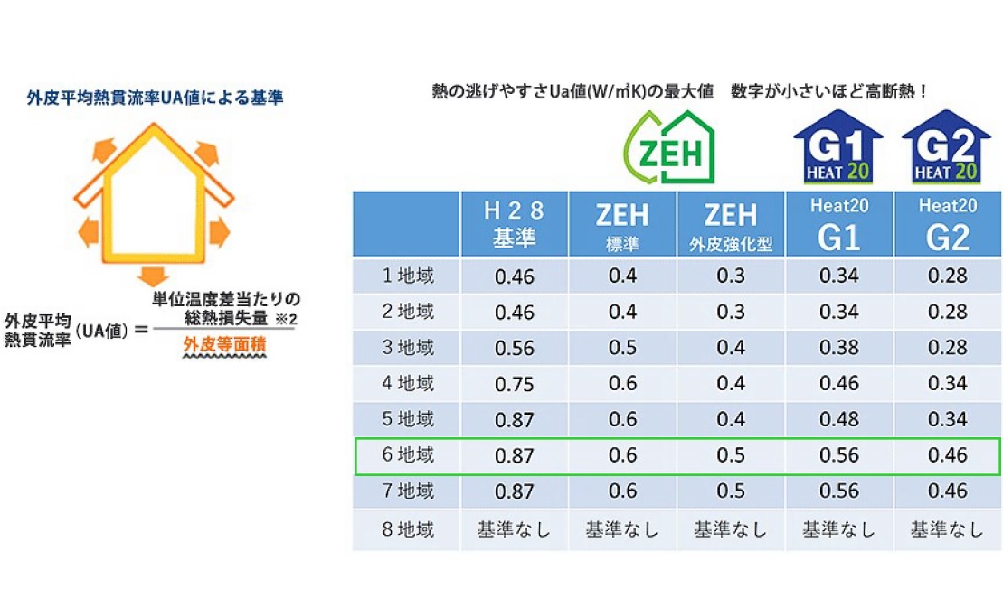 外皮性能基準Ua値0.45(外皮平均熱貫流率0.45W/㎡K)です。