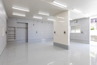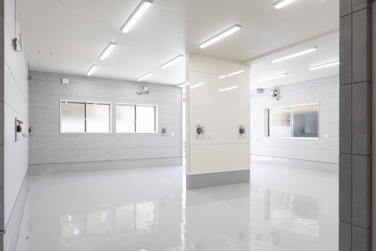 中央に作業用の間仕切壁を設置しておりますが、W8,645㎜*D9,100㎜*H3,400㎜の大空間の作業スペースになります。